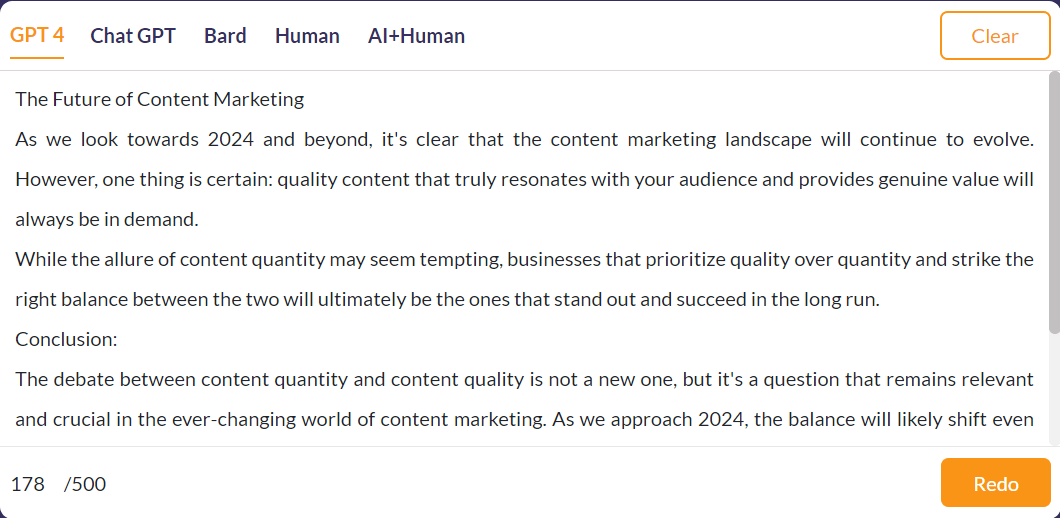 and I regretted it because the result was a paragraph of over 250 words. It was a detailed report of my given text, so I had to read through it. I was expecting a simple percentage or score. But it was text and only text.